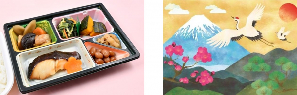 左:特別メニュー「銀だら西京焼き弁当」 右:ちぎり絵の完成イメージ