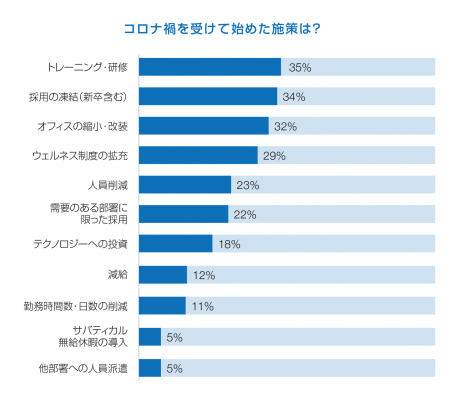 [企業] アフターコロナ: 1/3がトレーニング充実化、オフィス縮小に着手
