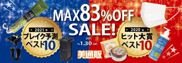本キャンペーンでは、コロナ禍で変化の激しかった2020年を振り返り、皆様から選ばれた人気アイテムをご紹介。さらに今年の動向を踏まえて、2021年にサロン様のお役に立ちそうな商品をピックアップし、最大83%OFFの美通販会員特別価格でご提供いたします。キャンペーン期間は2021年1月30日(土)まで。今年の買い忘れのフォローや在庫の買い足し、新年の準備などのお役に立てていただきたい次第です。