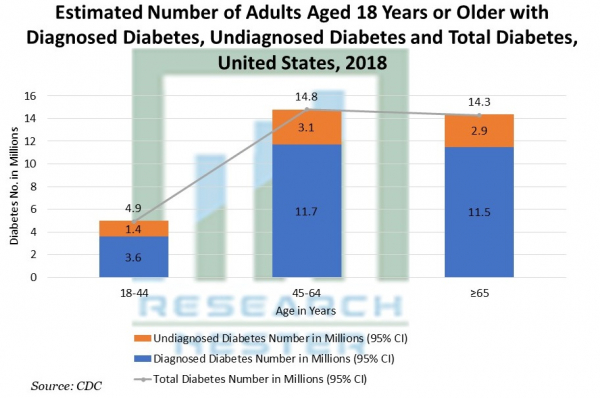 米国疾病予防管理センター(CDC)は、統計レポート「National Diabetes Statistics Report 2020」によると、2018年の18歳以上の米国人口における診断済み糖尿病と未診断糖尿病の両方の有病率は3,410万人(米国人口の10.5%)に登録されています。