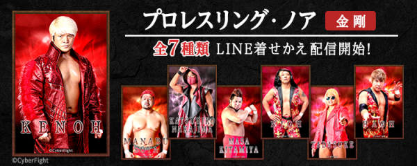 プロレスリング・ノアは、2000年8月5日に旗揚げされ、団体名が表すようにプロレス界の“方舟”となることをモットーとしたプロレス団体で、旗揚げ以降、日本プロレス、全日本プロレスと受け継がれてきたプロレスの伝統を重んじながらも、旗印である「自由と信念」を投影した闘いの数々で世代を超えて多くの人々を熱狂させてきました。株式会社CyberFightのDDTプロレスリング所属・提携する選手のLINE着せかえを配信してきた株式会社インクルーズが、株式会社CyberFightのプロレスリング・ノア所属・提携の全選手LINE着せかえを順次展開中の第2弾になります。LINE着せかえシリーズ第2弾となる今回は、「NOAH正規軍」に続き、「金剛」の7選手が7種類のLINE着せかえになって一斉に新登場です。赤を基調とした背景と各選手のイメージカラーで、ファンには嬉しいデザインとなっております。「NOAH正規軍」と「金剛」だけでなく、第3弾では、他チームのLINE着せかえも続々と登場予定ですので、ぜひ推しの選手にLINEを着せかえて、みてはいかがでしょうか。