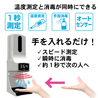 ・手のひらの温度測定と消毒を同時対応(約1秒のスピード対応で人の流れがスムーズ)