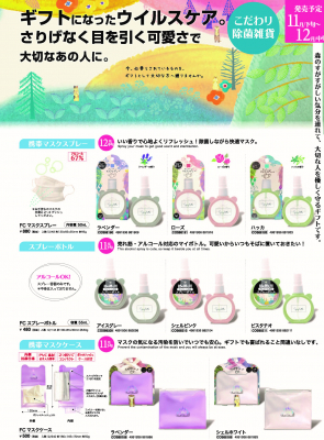 ★FCマスクスプレー(アルコール67vol%)ラベンダー、ローズ、ハッカの3種 各 880円(税抜)