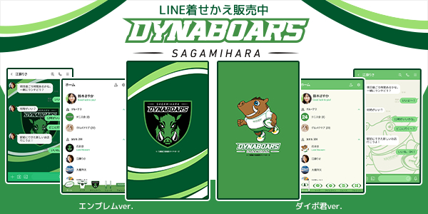 どちらもチームカラーの緑をメインに使用し、相模の原野を疾走する猪をイメージとした「強さ」「逞しさ」「勇ましさ」を連想させる、かっこよさ重視の「エンブレム」、幅広い世代にご利用いただける、かわいさ重視の「ダイボ君」となっております。気分やお好みで是非着せかえをお楽しみください。LINE着せかえを「エンブレム」または「ダイボ君」に着せかえ「三菱重工相模原ダイナボアーズ」一色に染めて応援してみてはいかがでしょうか。