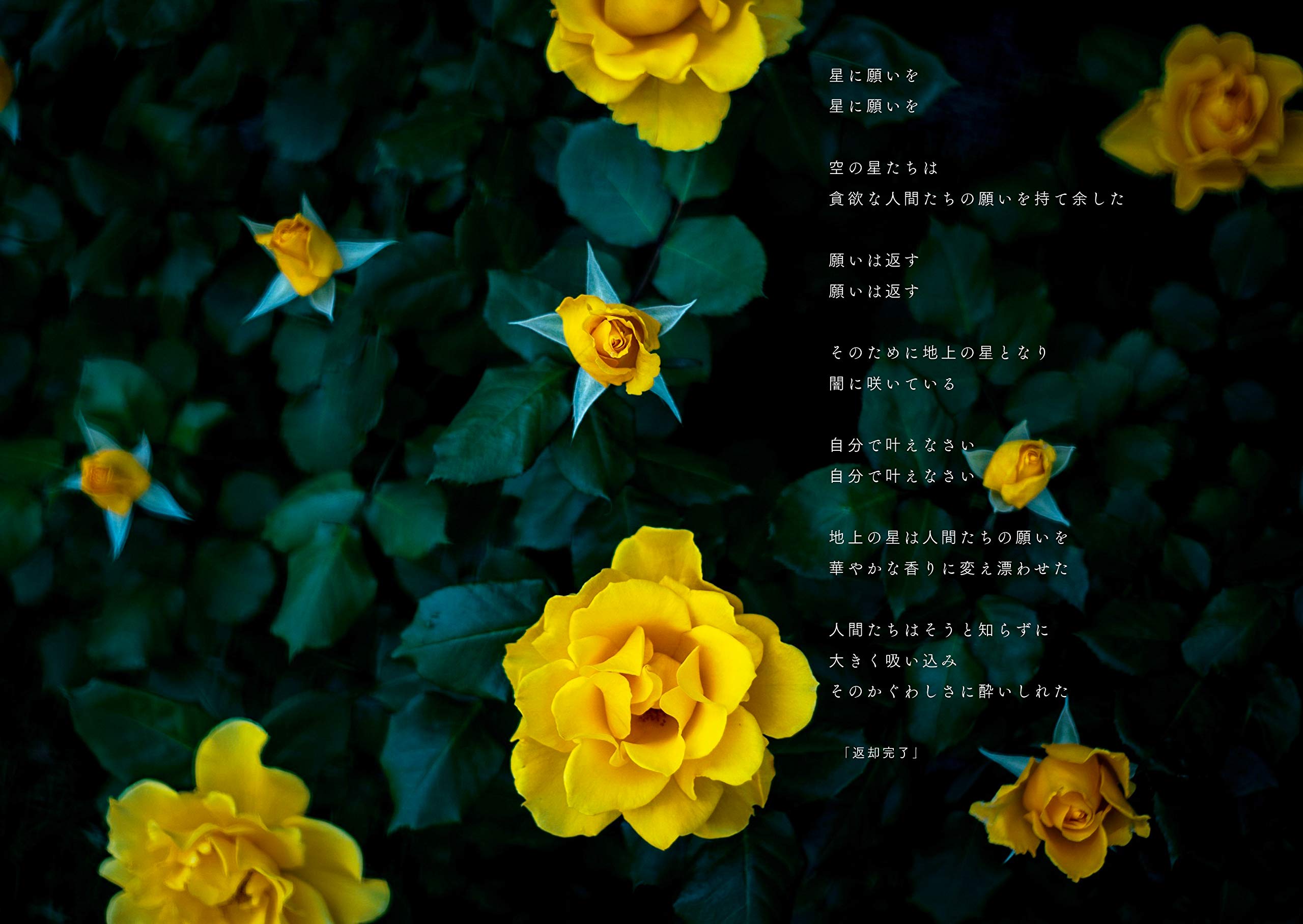 美しい花の写真に添えられた赤裸々なポエム。心の旅をするように