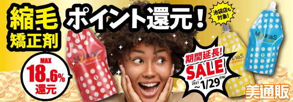 プロ向け美容材料の通信販売サイト「美通販」(https://www.bitsuhan.com)が、現在開催中の「縮毛矯正剤ポイント還元」キャンペーンの期間延長を決定。本キャンペーンは2020年12月28日(月)までを対象期間としていましたが、皆様からご好評をいただいていることを受け、2021年1月29日(金)まで期間を延長し、新たに開催する運びとなりました。