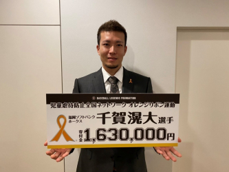 千賀選手は2019年シーズンより奪三振ごとに1万円を積立し、オレンジリボン運動を推進する「児童虐待防止全国ネットワーク」に寄付しております。今シーズン分として、公式戦149奪三振、ポストシーズン14奪三振、あわせて163奪三振分の163万円を同団体に寄付しましたことを12月22日に発表いたします。