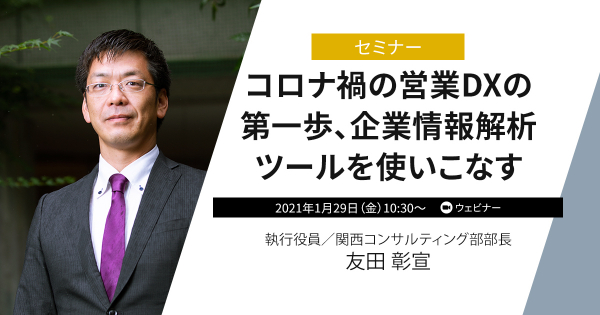 『コロナ禍の営業DXの第一歩、企業情報解析ツールを使いこなす』https://www.powerweb.co.jp/seminar/seminar20210129.html?utm_source=pr210129&utm_medium=pr&utm_campaign=dn