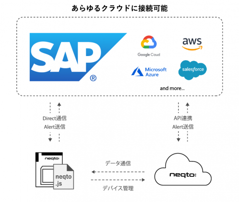 低消費電力IoTデバイス及び管理アルゴリズム提供のリーディングカンパニーJIG-SAWは、IoTエンジン「neqto: 」クラウド・コンソールとSAPのCloud IoTプラットホームとの統合開発を完了し、マーケットへの提供が可能となりました。本統合により、neqto: の利用ユーザー企業は、シームレスに、SAPのIoT・クラウド主要製品などのソリューションにダイレクトな接続が可能となります。