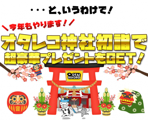 オタイオーディオ株式会社が運営するオタイレコードがオタレコ神社「お年玉プレゼント大抽選会」を12/25より開催いたします。