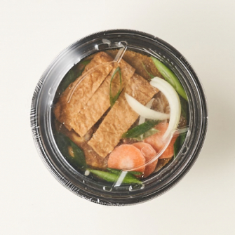 薬師庵株式会社(本社:京都市右京区)は、創業以来、60年間京うどん・そばを作り続けていて、出汁にこだわり、かえし製法のつゆはできるまでに約1カ月かけられています。和風だしの効いたビーフカレーに、贅沢にも九条ねぎをトッピングし、丁寧に炊き上げたカレーうどんです。具材は、玉ねぎ、にんじん、九条ねぎ、油揚げも入っていて、うどんを食べきった後にご飯を入れれば和風カレーライスとしてもお召し上がりいただけます。カップ入りなのでレンジで簡単に昼食や夜食に食べられます。レンジで温めるだけなので便利です。