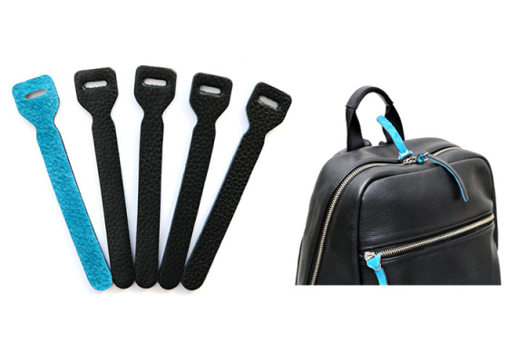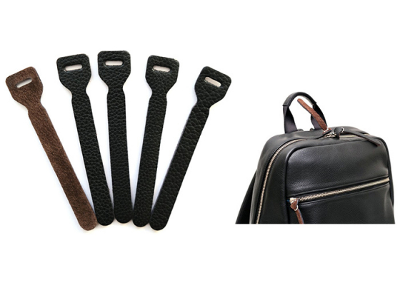 IND-LHT5は、バッグのファスナーに取り付けられる交換用レザー引き手です。