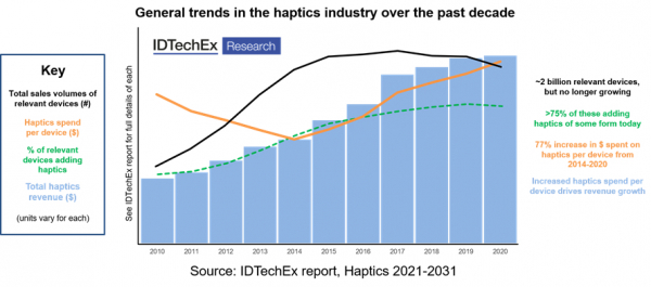 出展:IDTechEx調査レポート 「ハプティクス 2021-2031年: 技術、市場および有力企業」