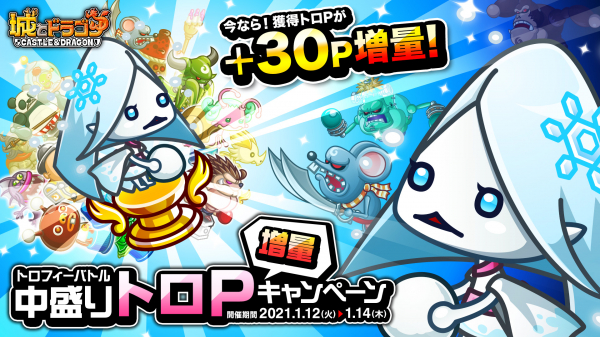 株式会社アソビズム(本社:東京都千代田区、代表取締役:大手智之)は、App Store・Google Playにて好評配信中の『城とドラゴン』で、「トロフィーバトル 中盛りトロP増量キャンペーン」を2021年1月12日(火)より開催いたします。