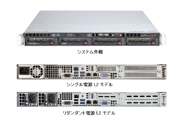 LGA-1151ソケット(H4ソケット)のIntel Xeon E-2200/2100シリーズCPUと、第9世代・第8世代Intel Core-i3シリーズCPUが搭載可能なコストパフォーマンスに優れた1Uサーバーです。