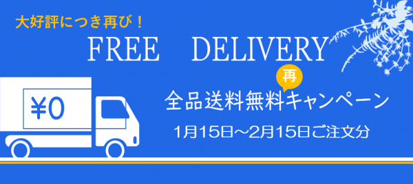 上記期間中、全品どれでも全国送料無料でお届けいたします。