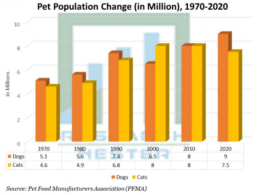 人々は孤独を避け、心理的幸福を改善する手段としてペットの養子縁組に頼っています。ほとんどの人はペットのために最善を尽くそうとします。これにはしばしば食べ物が含まれます。その結果、人々はペットフードをまとめて購入する傾向があり、食品を新鮮に保つために高級包装が必要です。これは、予測期間中にペット食品加工市場の成長を推進すると予想される重要な要因です。PFMAによる他の統計では、2019年に認識された、人口数が最も多い上位10匹のペットは犬であり、猫、ウサギ、屋内の鳥、モルモット、家禽、カメとカメ、ハムスター、ヘビ、トカゲがそれに続きました。