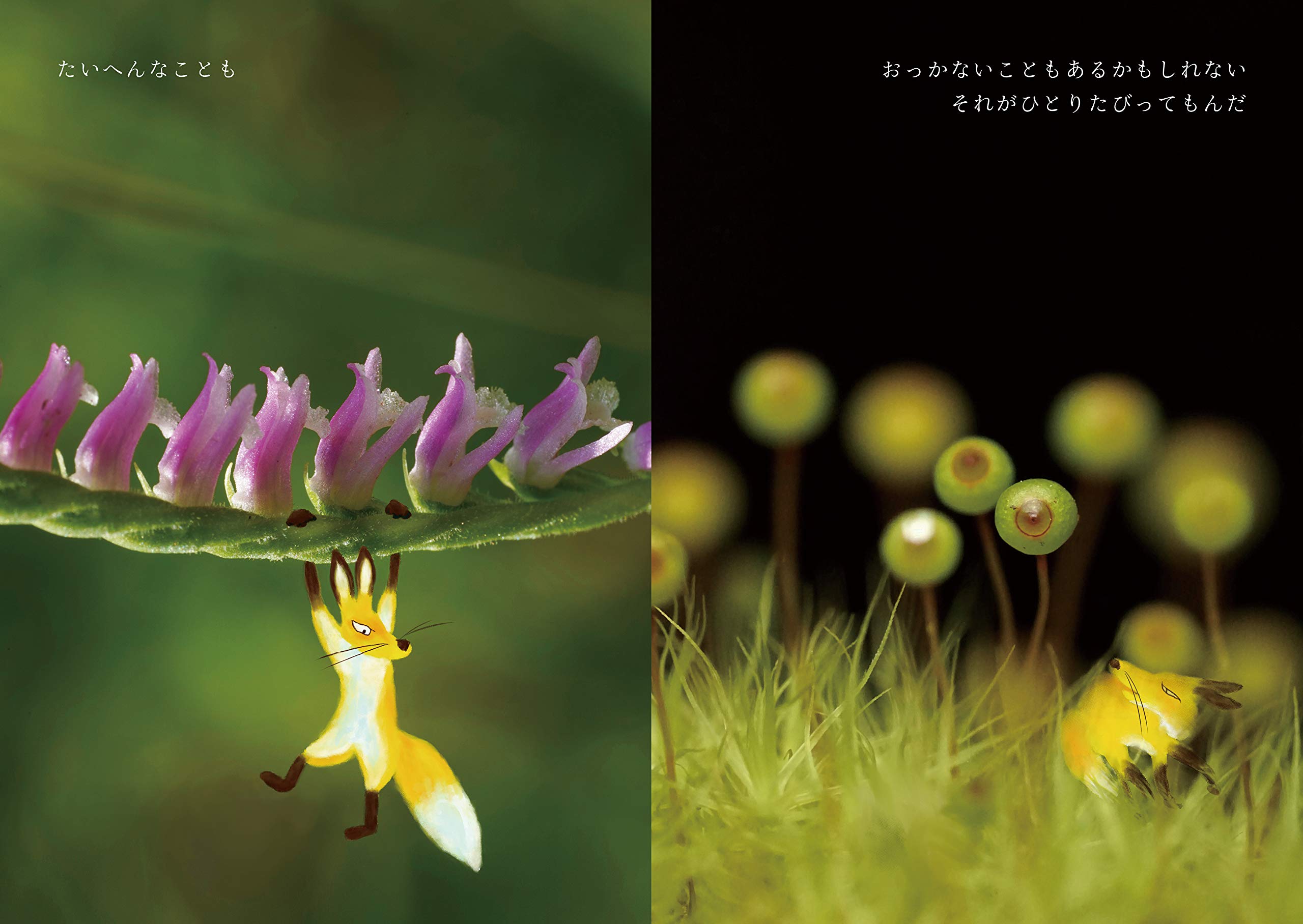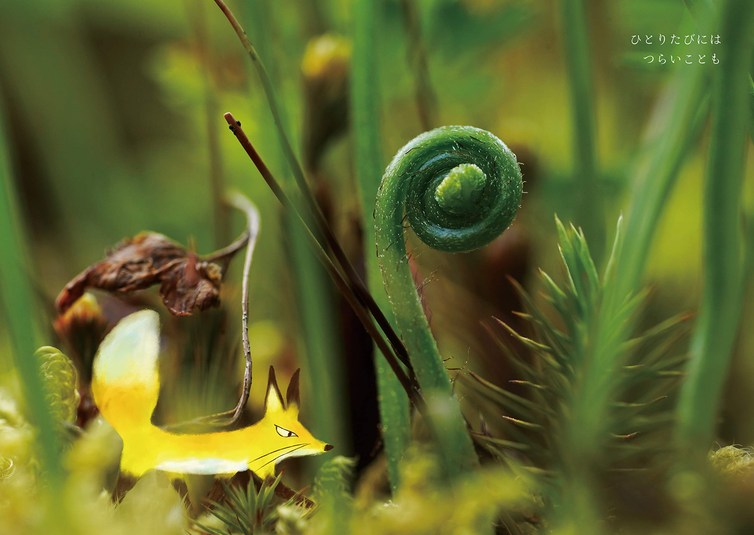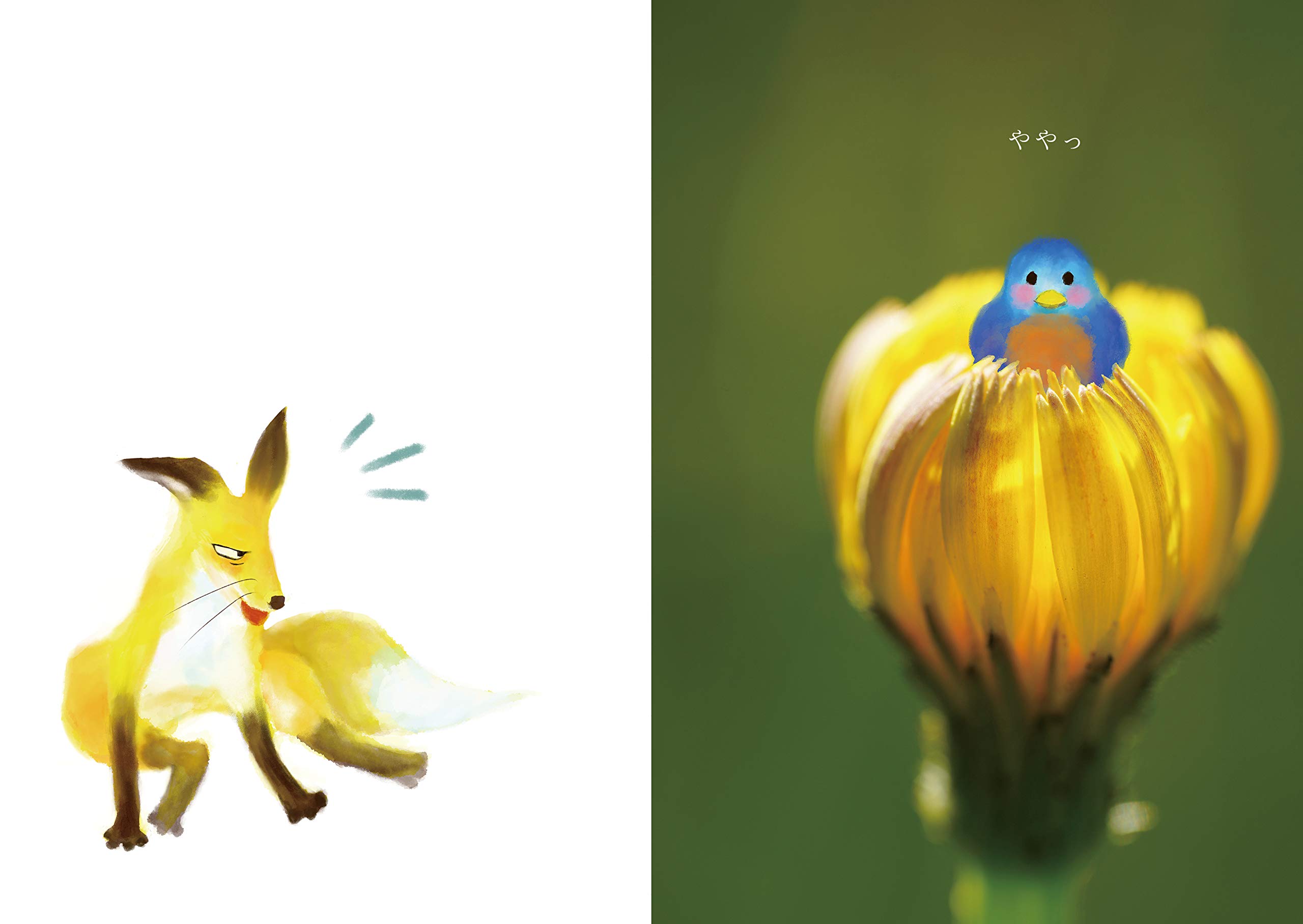 生き生きと動きまわるキツネ君と鳥さんの姿が描かれています。
