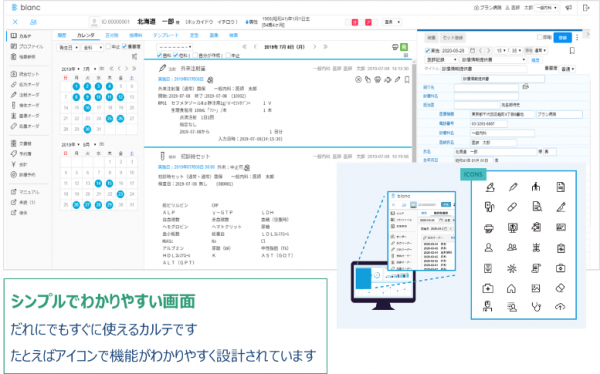 「blanc」は、電子カルテ・オーダ・看護機能を統合したオンプレミスで稼働する現行のWeb型電子カルテ「Ecru」(エクリュ)を機能強化し、クラウド化したものです。Ecruは、これまで200施設を超える病院への導入と医事会計システムや検査、画像システムなど、他システムとの連携を行い、病院情報システム基盤を構築してきました。したがって、「blanc」はこれまで利用されているシステムとの連携もスムーズな上、UIデザインを向上させ使いやすくしました。
