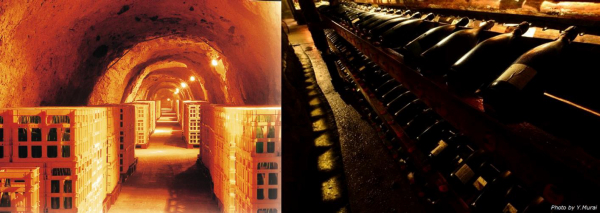 洞窟酒蔵は、第二次世界大戦末期に戦車を製造するために建造された地下工場跡です。昭和19年11月に東京動力製造(株)の疎開が決まり、山裾に半地下工場が建造され、隣接してこの地下工場も造られました。半地下工場では終戦までに約20台の戦車が製造されたと言われていますが、この地下工場では戦車を製造すことなく終戦を迎えています。