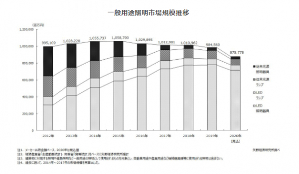 株式会社矢野経済研究所(代表取締役社長:水越孝)は、国内の照明市場を調査し、一般用途照明市場の概況、参入企業の動向、および将来展望を明らかにいたしました。