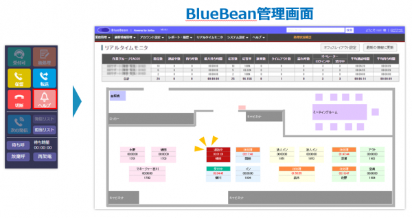 BlueBeanは、クラウド型のコールセンターシステムです。コールセンター・オフィス電話の併用が可能なので、コールセンター用・オフィス電話用と電話システムを分ける必要はありません。インターネットとPCがあればどこでも利用ができ、社内外問わず電話の受架電が可能なのでテレワークにも最適です。