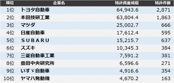 詳細については、ランキングデータ「自動車メーカー 特許資産規模ランキング」にてご覧いただけます。