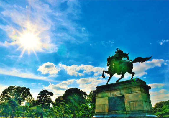 この度のOTOGINO賞は、皇居外苑の楠木正成像を映した「天駆ける」(撮影者 間瀬幾雄さん)。馬に乗った楠木正成の像を後方から収めたことで、大空を単騎で駆ける様な勇ましさを表現した作品です。