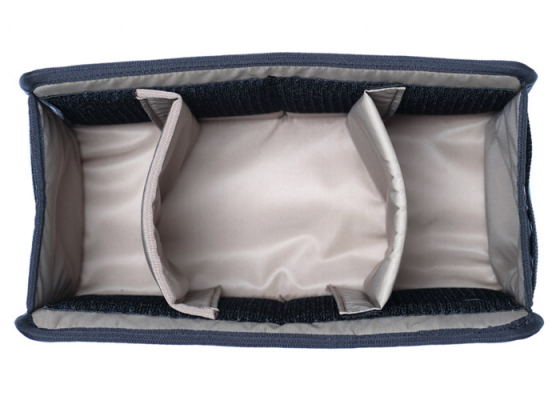 2枚の仕切りは自由に取り外しでき、入れるものに合わせて自在にレイアウトできます。