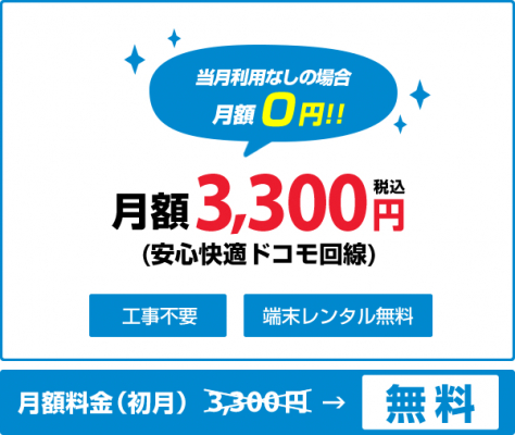 月額: 3,300円(税込)(★当月利用なしの場合 0円)