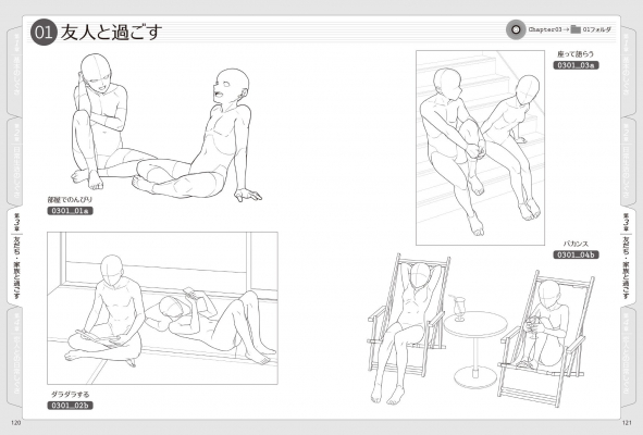 気取らない日常のワンシーンを描きたい時、ポーズの参考として役立ちます。