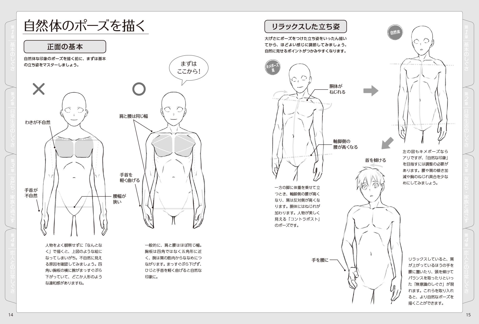 ●ポーズ素材に加えて、描き方のテクニックも徹底解説!