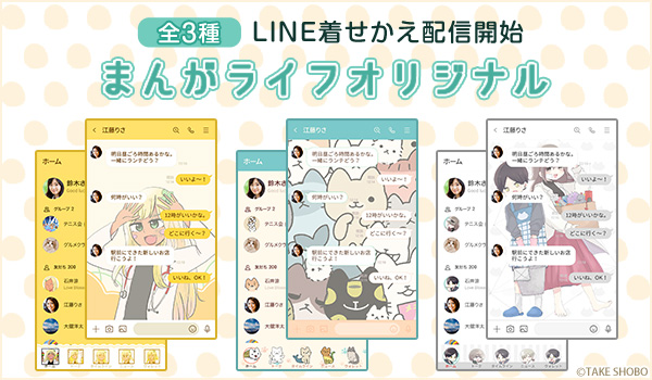 株式会社竹書房×株式会社インクルーズが贈るLINE着せかえシリーズ第5弾は、4コマ誌「まんがライフオリジナル」より「ギャル医者あやっぺ」、「ねこようかい」、「はかせの未来」の3作品がLINE着せかえとなって一斉に新登場です。今後も竹書房とインクルーズのコラボレーションにより、続々とLINE着せかえの配信を予定しておりますので、是非お気に入りのLINE着せかえを見つけてみてください。