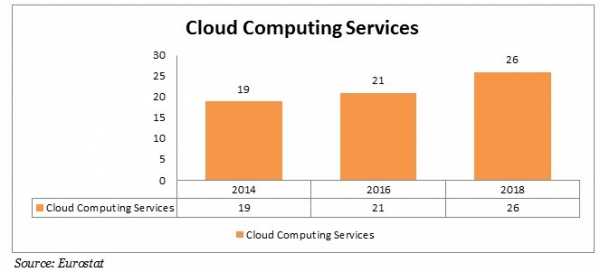 Eurostatによると、過去数年間で、クラウドコンピューティングサービスは19から26に成長し、2018年の23.81%から増加しました。