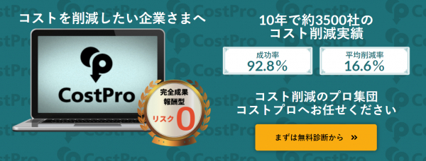 withコロナを迎えた企業の経済活動において、コスト削減は必須です。コストプロでは完全成果報酬でみなさまのコストを削減し、経営体質の改善をお手伝いいたしますので、まずは無料のコスト適正診断からお任せください。