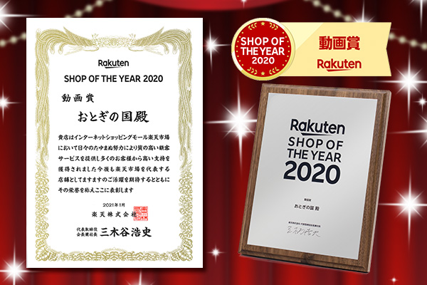 株式会社OTOGINO(オトギノ:代表取締役社長 鬼武公洋 本社 大分県日田市北友田 2 丁目 2123 番地 1)がインターネット・ショッピングモール「楽天市場」にて出店している『おとぎの国』は、「楽天市場」の約53,000店舗(2020年9月末時点)の中から選ばれる【楽天ショップ・オブ・ザ・イヤー2020】を受賞しました。