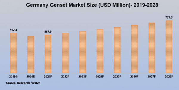 ドイツの発電機市場は、2028年までに774.5 百万米ドルの市場価値に達すると予想されています。