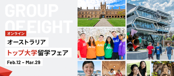 ※Group of 8…オーストラリアの大学ランキング上位8大学(オーストラリア国立大学、メルボルン大学、モナッシュ大学、シドニー大学、ニューサウスウェールズ大学、クイーンズランド大学、西オーストラリア大学、アデレード大学)の総称