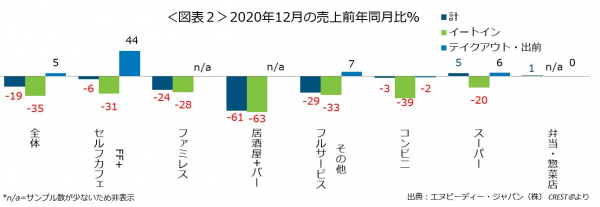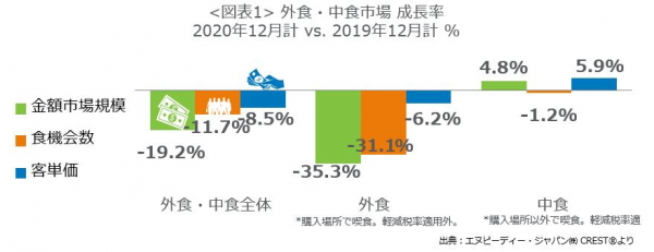 外食・中食市場情報サービス『CREST(R)*1』を提供するエヌピーディー・ジャパン株式会社(東京都港区、トーマス・リンチ代表)は、外食・中食市場2020年12月の動向分析レポートを2021年2月9日に公表します。