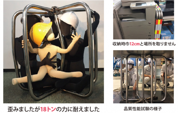 コンパクトシェルターMY SHELL 2は、コンパクトに収納・5秒で退避・安価と3拍子が揃った究極のシェルターです。地震で木造住宅の2Fが倒壊しても安全の確保が出来ます。耐震改修工事に比べて期間を要することなく安価で、またコンパクトに収納できるから従来の生活スペースを壊しません。上からの最大荷重18.4トンまで耐えうることが出来るので、万が一建物が倒壊しても、コンパクトシェルター MY SHELL 2 が安全な場所を確保します。
