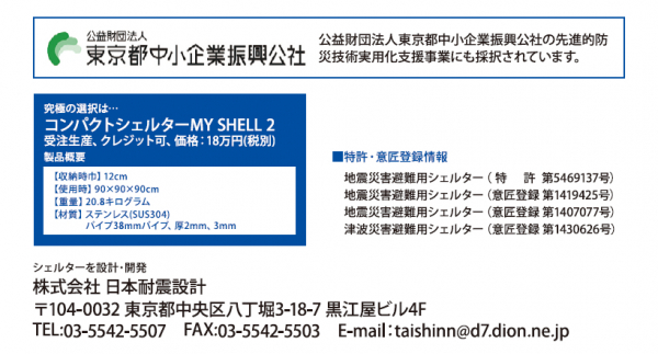 株式会社日本耐震設計ではこのたび3作目の国内初の収納巾12cm・価格18万円のコンパクトシェルターを2021年2月10日に販売開始を致しました。