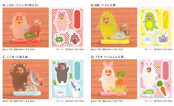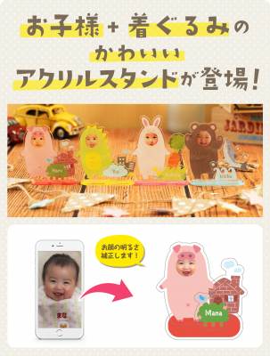 「きぐるみアクリルスタンド」はお子様の「顔写真」と「きぐるみ」を組み合わせたオリジナルのアクリルスタンドです。
