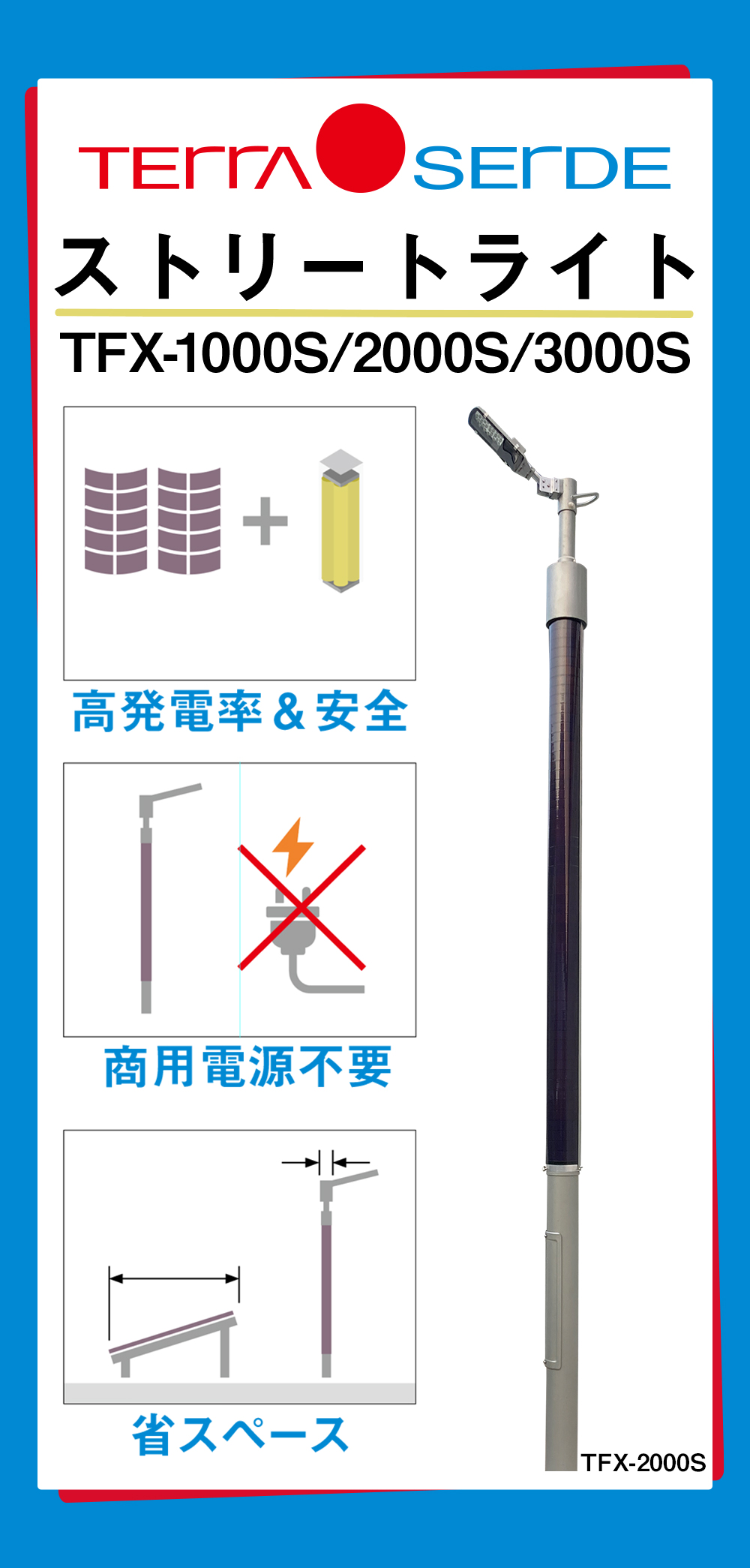 1)TerraSerde(テラセルデ)ブランドより「ストリートライト」実機3本の展示