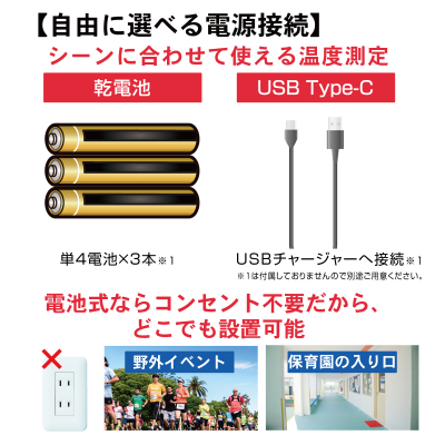 ・電源接続は 「乾電池」、「USB給電」※乾電池、コンセント接続用USB充電器は付属しておりません