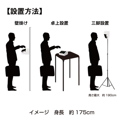 ・設置方法:「三脚」、「卓上」、「壁掛」に対応