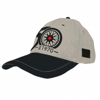 50周年記念キャップは前面に大きな"50周年記念ロゴ”の3D刺繍、背面には"Technik aus dem Motorsport"をエンボス加工で刻印。