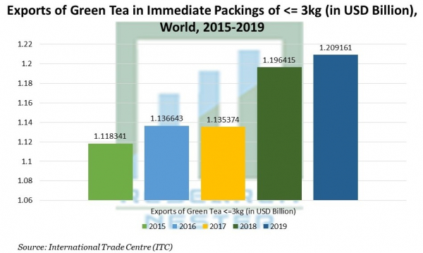 国際貿易センター(ITC)の統計によると、3キロ以下の即時包装の緑茶の輸出は2015年の11億1000万ドルから2019年には12億1000万ドルに増加しました。