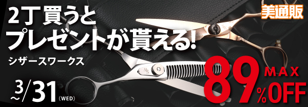 「美通販」のシザースワークスキャンペーンでは、「シザーを必要とする美容業界のすべての方々が、もっとシザーを購入しやすくなるよう応援していきたい」という考えに基づき、高品質のシザーを厳選し、最大89%OFFの美通販会員特別価格でご提供いたします。キャンペーンは2021年3月31日(水)まで開催いたしますので、この機会に美容学生・アシスタントの方々から理美容師様まで、たくさんの方々にご利用いただきたいと考えております。