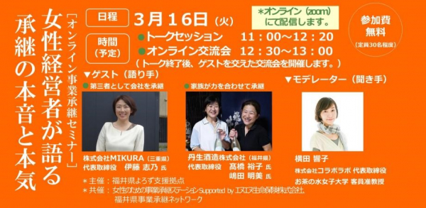 ■実施要項:[オンライン事業承継セミナー]『女性経営者が語る、承継の本音と本気』