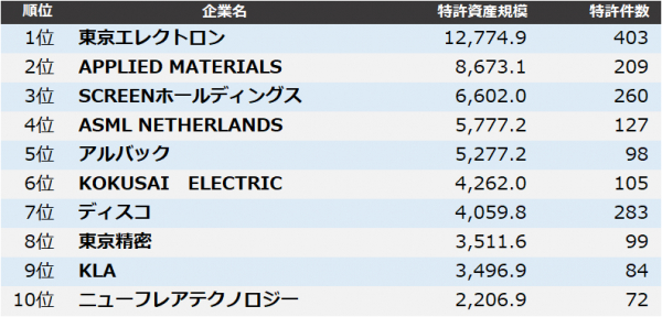 株式会社パテント・リザルトは3月8日、独自に分類した半導体製造装置業界の企業を対象に、各社が保有する特許資産を質と量の両面から総合評価した「半導体製造装置 特許資産規模ランキング2020」をまとめました。2019年4月1日から2020年3月末までの1年間に日本特許庁が登録した特許を対象に、個別特許の注目度を得点化する「パテントスコア」を用いた評価を行い、企業ごとに総合得点を集計しました。